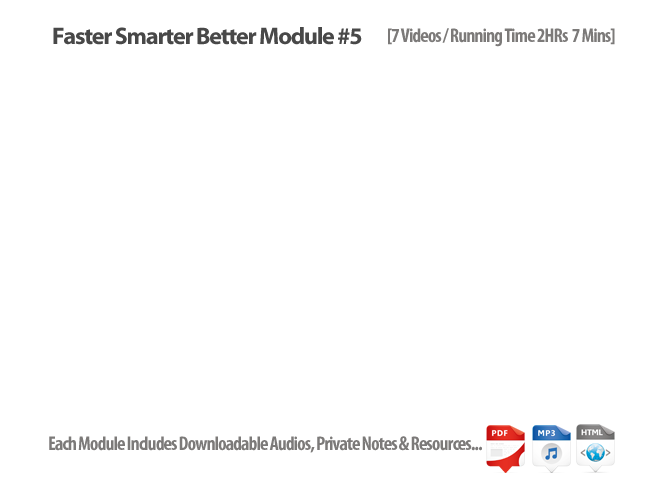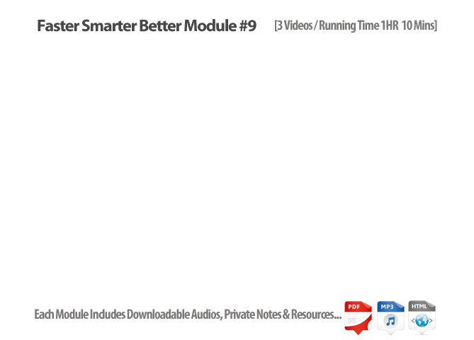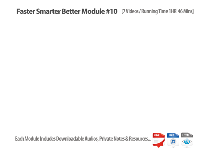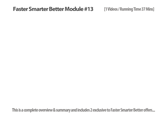 However, when we saw the Faster Smater Better Video Coaching that our business partners had invested a huge amount of time and money to develop, and how detailed it was… We knew we had to ask if we could buy the rghts to sell it! (and finally once that was acheived – we wanted to put it out at the lowest possible pricing we were permitted to in order to help our subscribers. This is the result!)