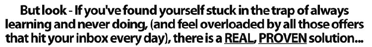 Well here’s the cold, hard truth: Most online marketers simply end up experiencing confusion, they spend way too much on crap ‘systems’ that don’t work, they make meagre or non existent profits and end up completely overwhelmed.